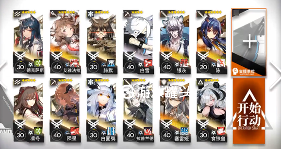 赫默精一也够,要是没有赫默,换成夜莺是最好的,能大大降低难度,要是没有夜莺,换成调香师也是可以试试看的,食铁兽也可以换成任意有伤害的近卫或者重装,这个阵容主要就是利用白雪陨星的超长射程和aoe伤害在敌人刚出门会站一会的情况下打一波输出。
