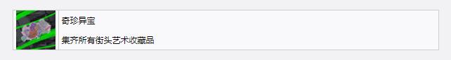 找到全部80个街头艺术即可跳杯。街头艺术出现在建筑物的墙上,前边还有一架梯子和喷漆罐。开车过来后,跑到梯子上,按□键就能收集这些街头艺术图片。
