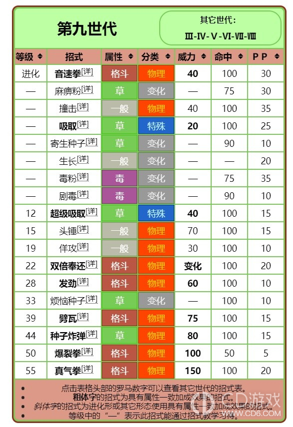 同理,新宝可梦里有些还有进化前招式,也是因为gf在输技能表时的疏忽。