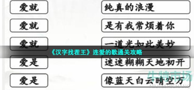 以上就是软件站小编给大家带来的关于《汉字找茬王》连爱的歌通关攻略全部内容,更多精彩内容请关注软件站,小编将持续更新更多相关攻略。