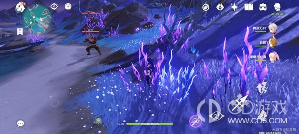 采集完后往北看去有一个机关解密,而在机关解密那边的紫色草丛那里有一株。(两个天云草实)