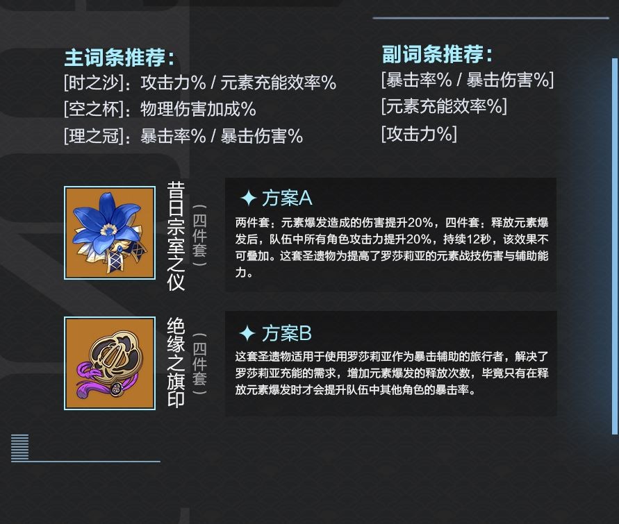 原神罗莎莉亚值得培养吗 原神罗莎莉亚圣遗物推荐