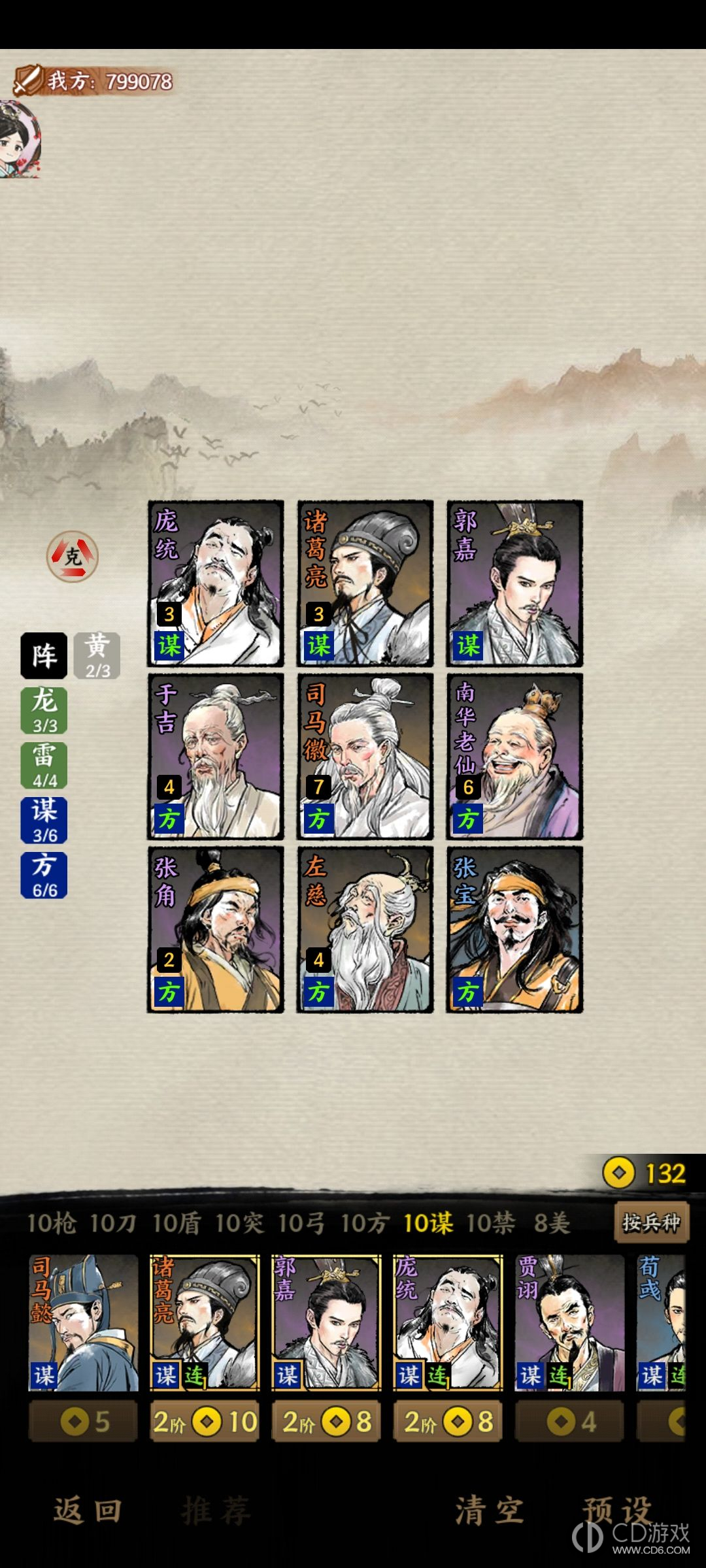 阵容解析:极致的控制阵容。卧龙凤雏让前排的三谋威力大增,庞统的连环计则让目标变多,更能打出控制,雷动九天的效果和张宝的加控弥补了输出,可以说是可以把人控到绝望的阵容。就算前排出现缺口,郭嘉的遗计也能稳定控制,为队友创造输出空间