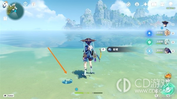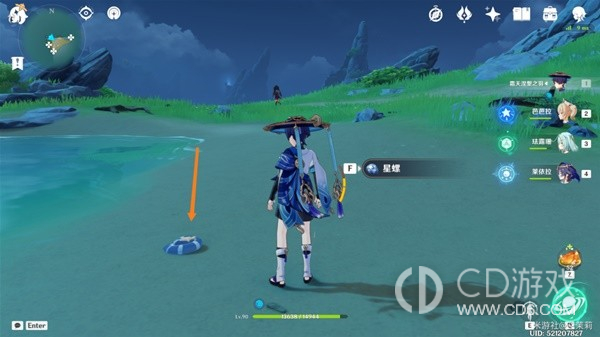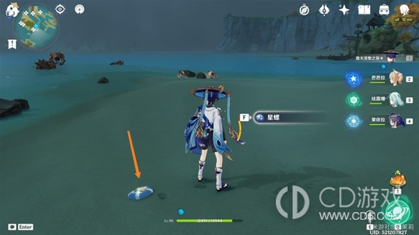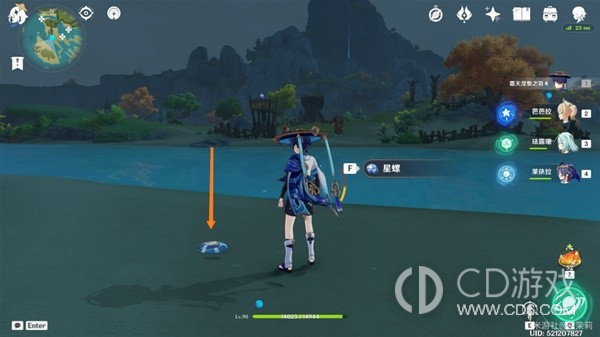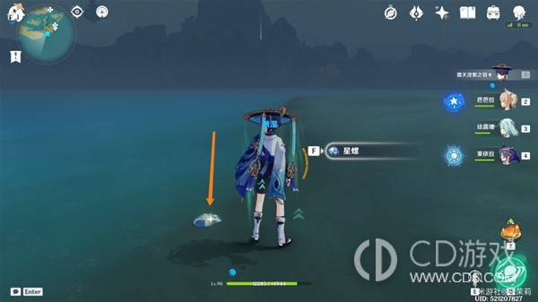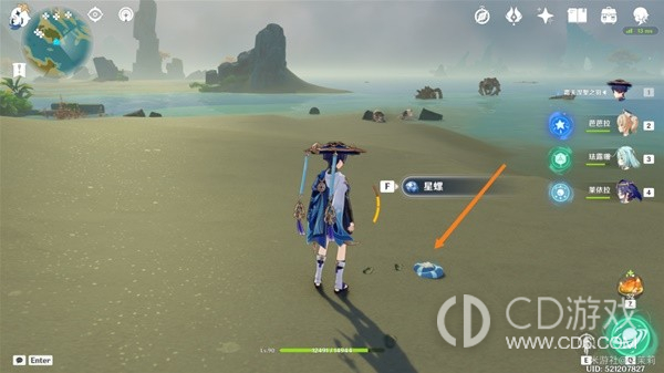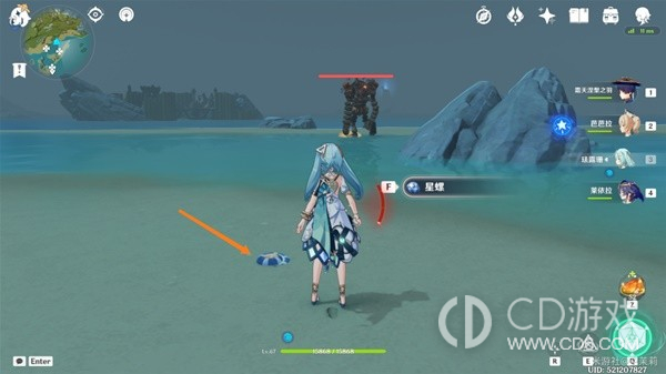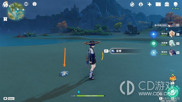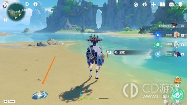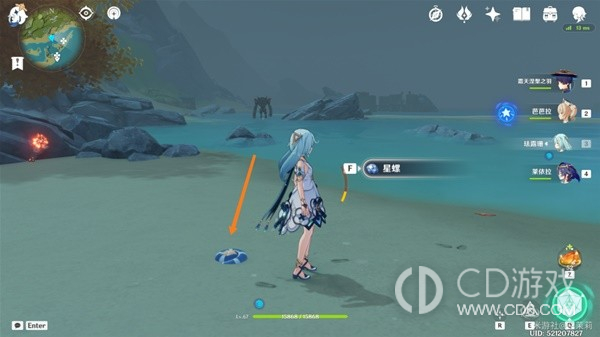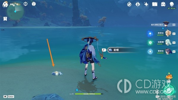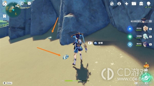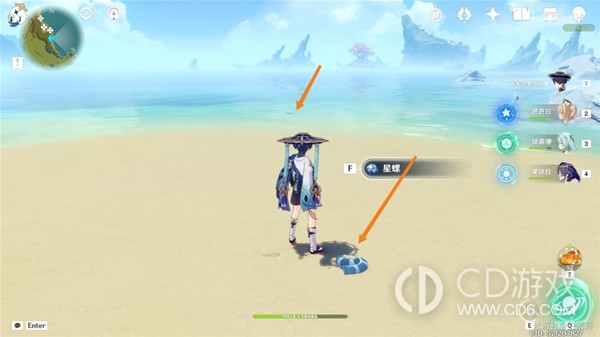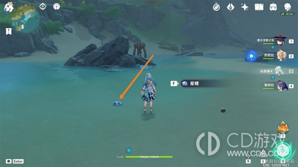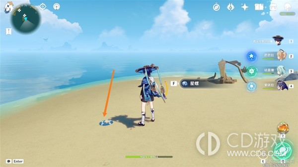 首先传送到秘境视角向右转从出口出来在地上可以看到一个星螺。