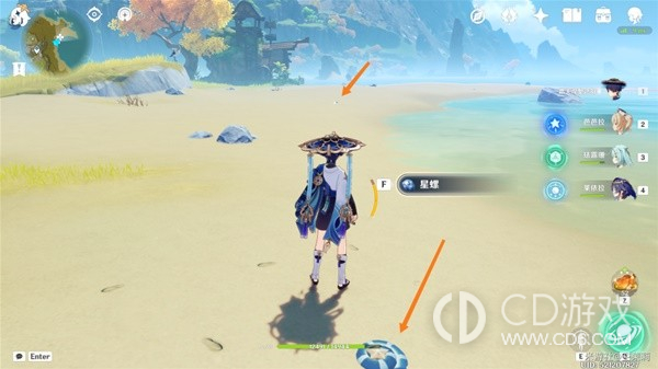 注意这边有一个npc可以对话得到三个星螺,首先找到这个阿卜。