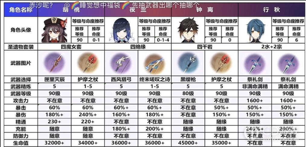 原神胡行夜钟队伍毕业属性