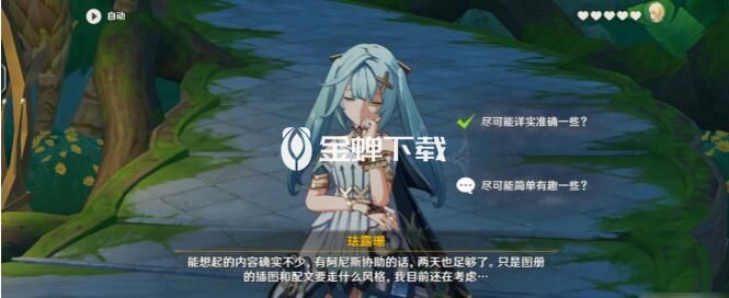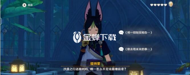 继续该分支,可以选择告诉提纳里沙漠之行的实情或为珐露珊隐瞒实情,该选择会导致不同的结局。完成所有五个分支,获得成就最优解。